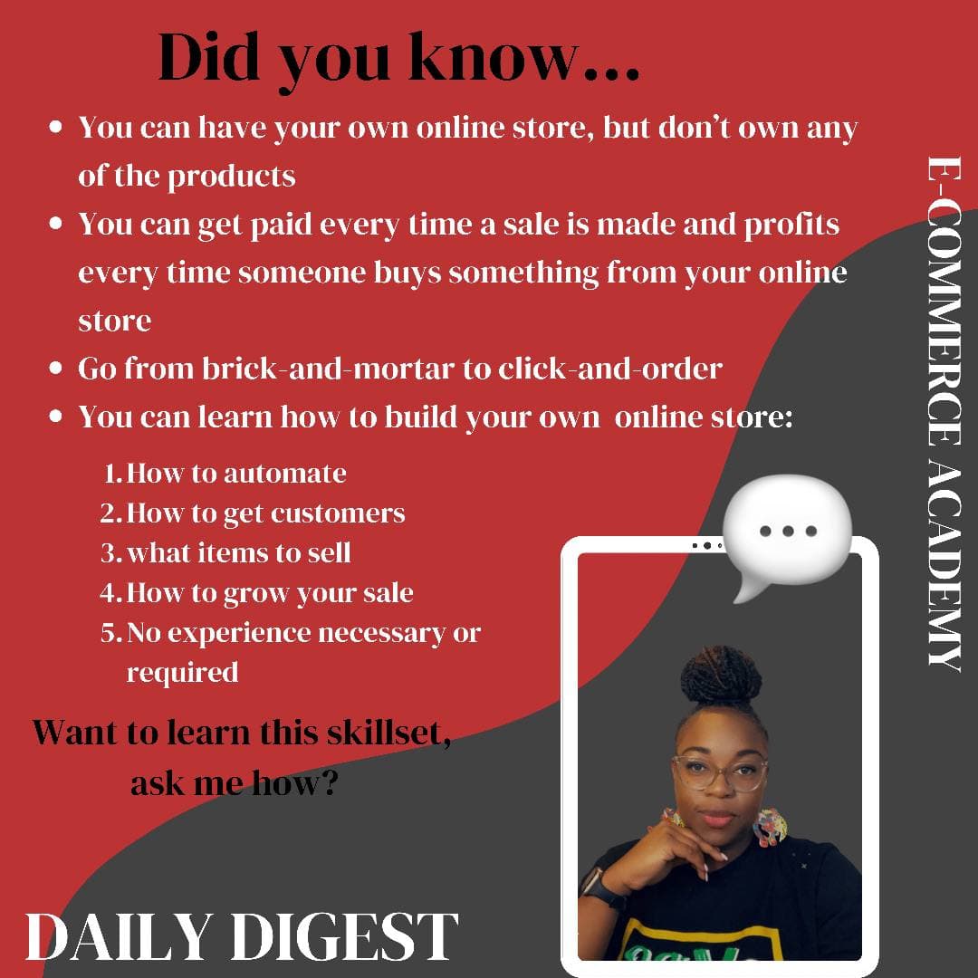 Think about it, learn a new skillset that allows you to multiply your money and money in your sleep. Make passive income building one or multiple online stores from scratch. Build a business and generate residual income. All at your own pace on your own time from the comforts of your own home!